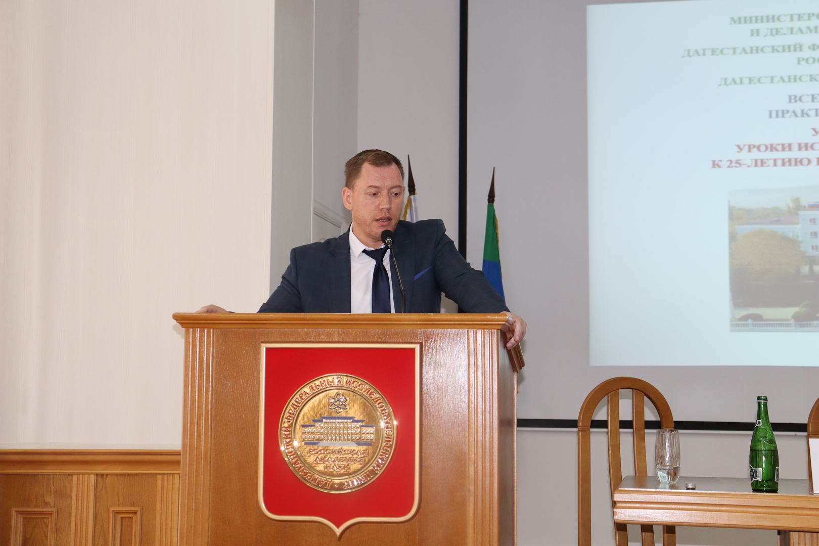 С приветственным словом выступили заместитель Председателя Правительства Республики Дагестан Муслим Телякавов, заместитель министра по национальной политике и делам религий Республики Дагестан Арсен Махмудов и и.о. руководителя Регионального центра этнополитических исследований ОП ДФИЦ РАН (заместитель председателя).