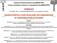 23 октября в ДФИЦ РАН состоялся открытый семинар "Молекулярно-генетические исследования в современной ботанике". Организаторами выступили Горный ботанический сад ДФИЦ РАН и Совет молодых ученых и специалистов ДФИЦ РАН